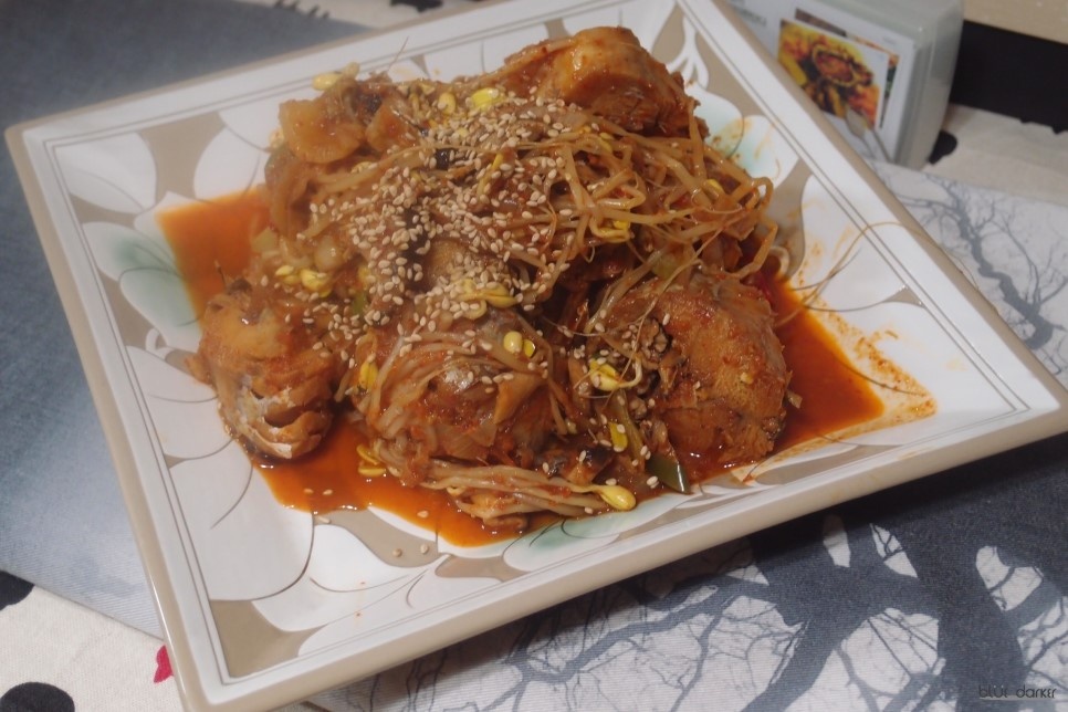 This Kodari Jjim features a fantastic harmony of chewy dried pollack coated in a spicy yet sweet sauce. Packed with crunchy bean sprouts and aromatic vegetables, it offers a rich and satisfying flavor. Even using frozen pollack results in a delicious dish, perfect as a hearty side for rice or a delightful appetizer with drinks!