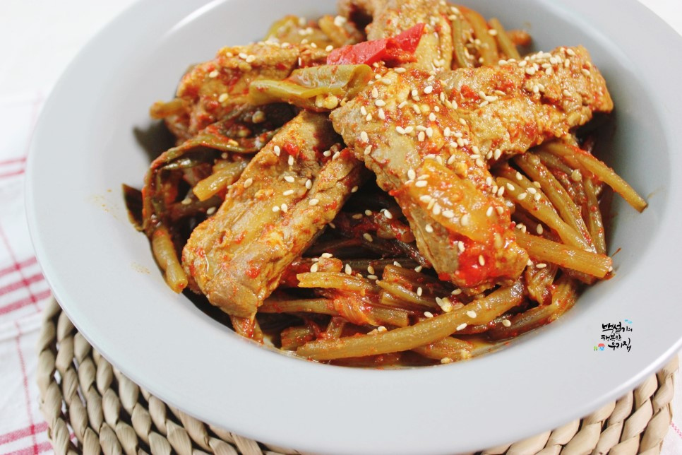 An amazing harmony of chewy pork ribs and crisp sweet potato stems! Inspired by a popular Korean TV show’s recipe, this is a special version made with pork ribs and sweet potato stems instead of fish. Learn the secret to easily peeling sweet potato stems and make this delicious spicy and sweet stew. It’s perfect as a side dish for rice or a delicious accompaniment to drinks!