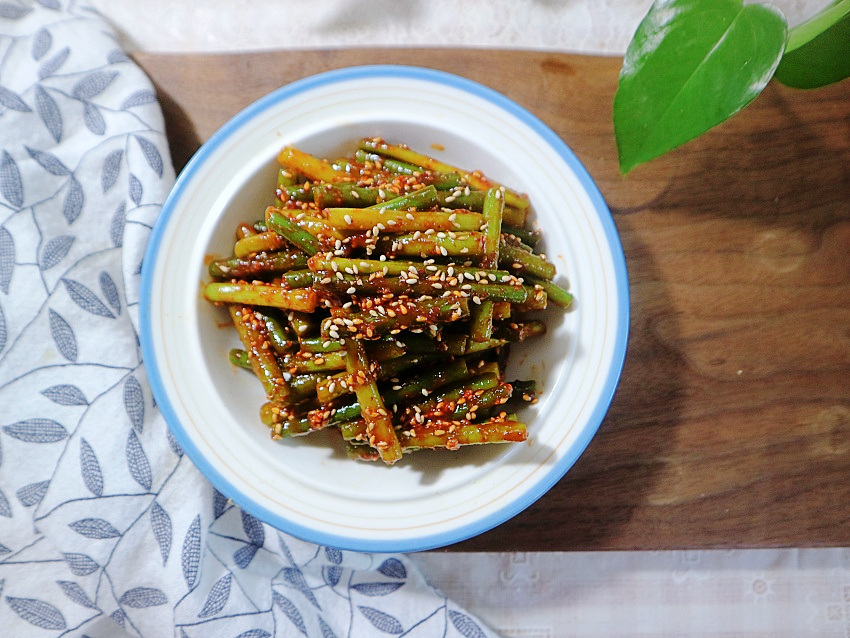 Spicy Gochujang-seasoned Garlic Scapes, a Delicious Side Dish