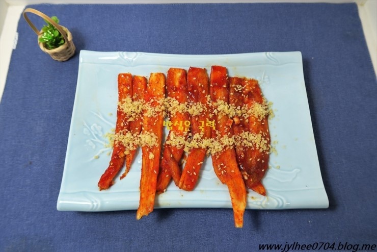 Toss the deodeok with the prepared marinating sauce, ensuring each piece is evenly coated. This step softens the unique flavor of deodeok and adds a subtle richness. Let it marinate for about 15 minutes to allow the flavors to penetrate.