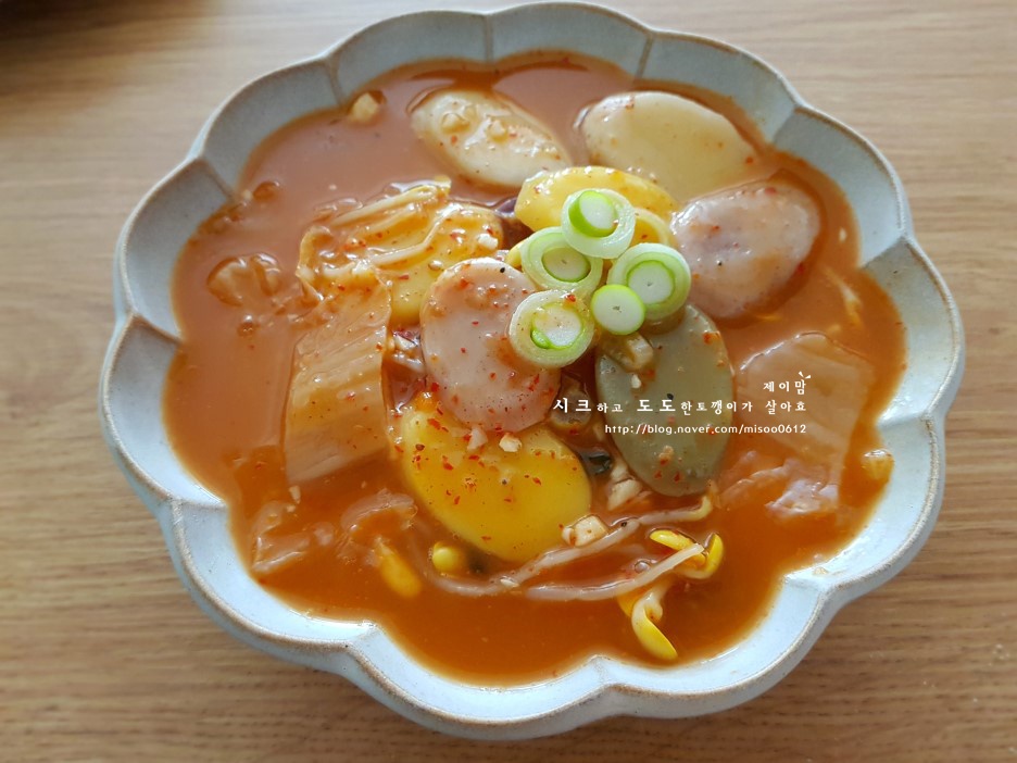 Your warm and spicy Kongnamul Kimchi Tteokguk is ready! Enjoy it piping hot for the best flavor.