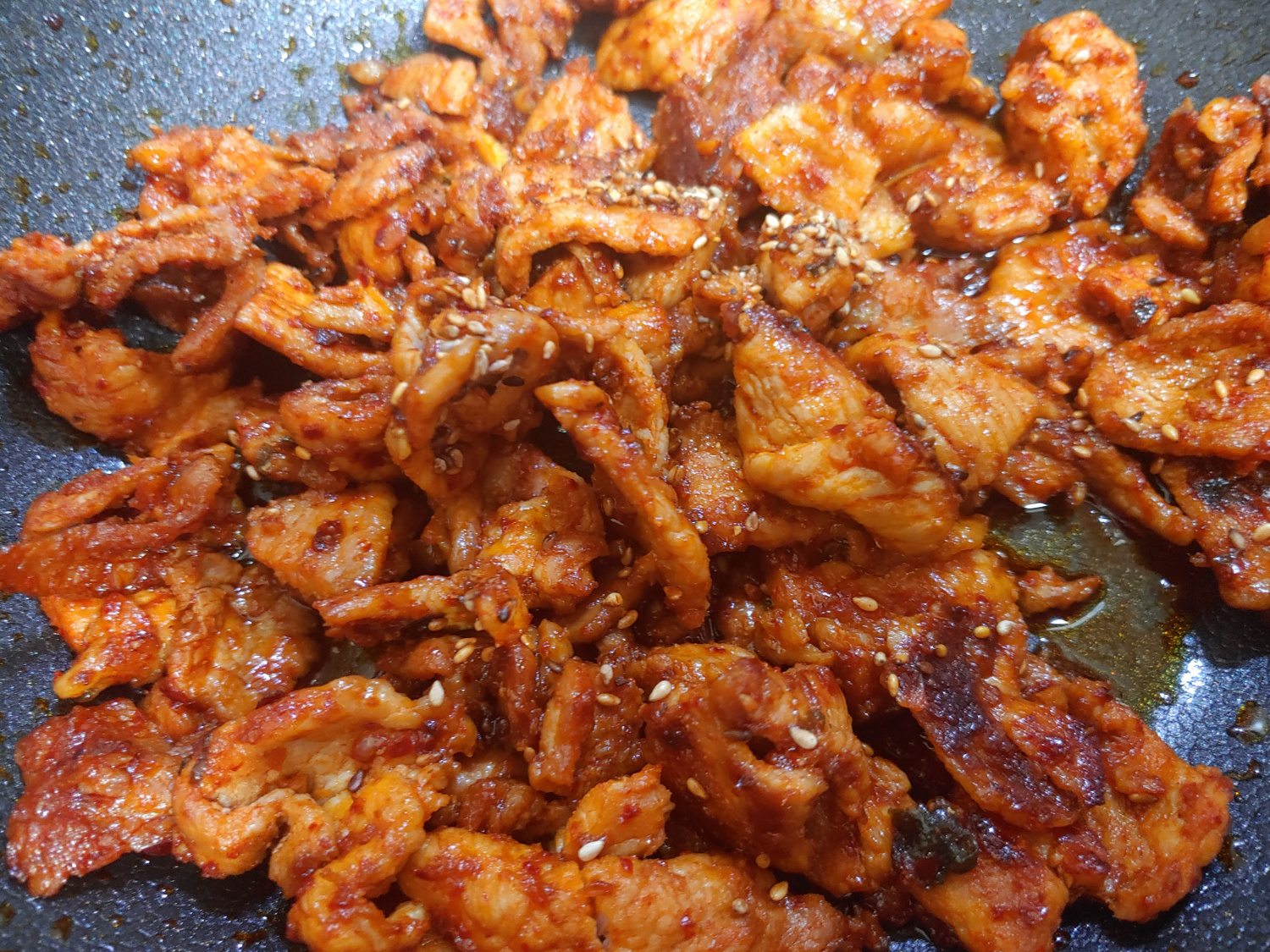 Just before turning off the heat, drizzle in a bit of oligodang (or corn syrup/honey) and give it a quick stir. This adds a lovely glossy finish and balances the flavors. Serve your delicious, smoky Jeyuk Bokkeum hot over a bowl of steamed rice!