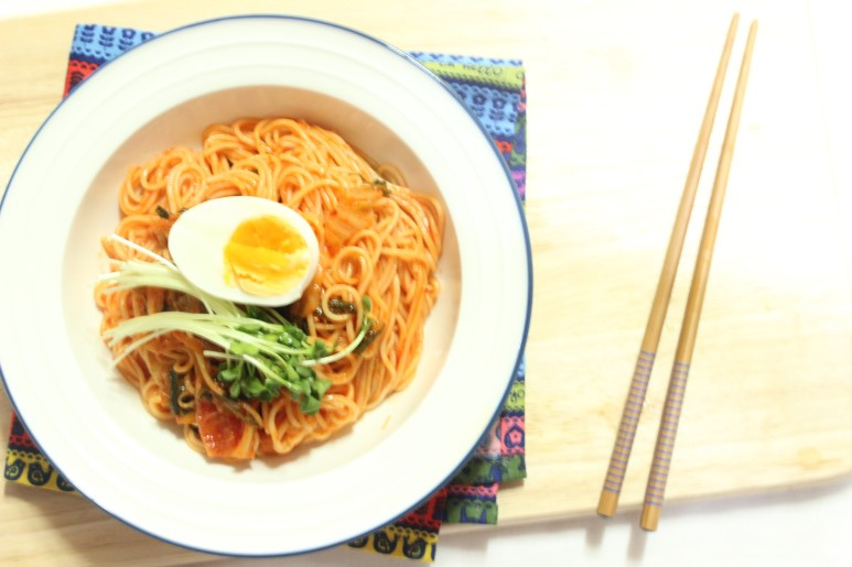 Spicy & Sweet Kimchi Bibim Guksu (Korean Spicy Noodles)