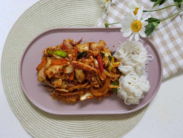 A Recipe for Spicy Stir-fried Squid Without Gochujang, Served with Noodles
