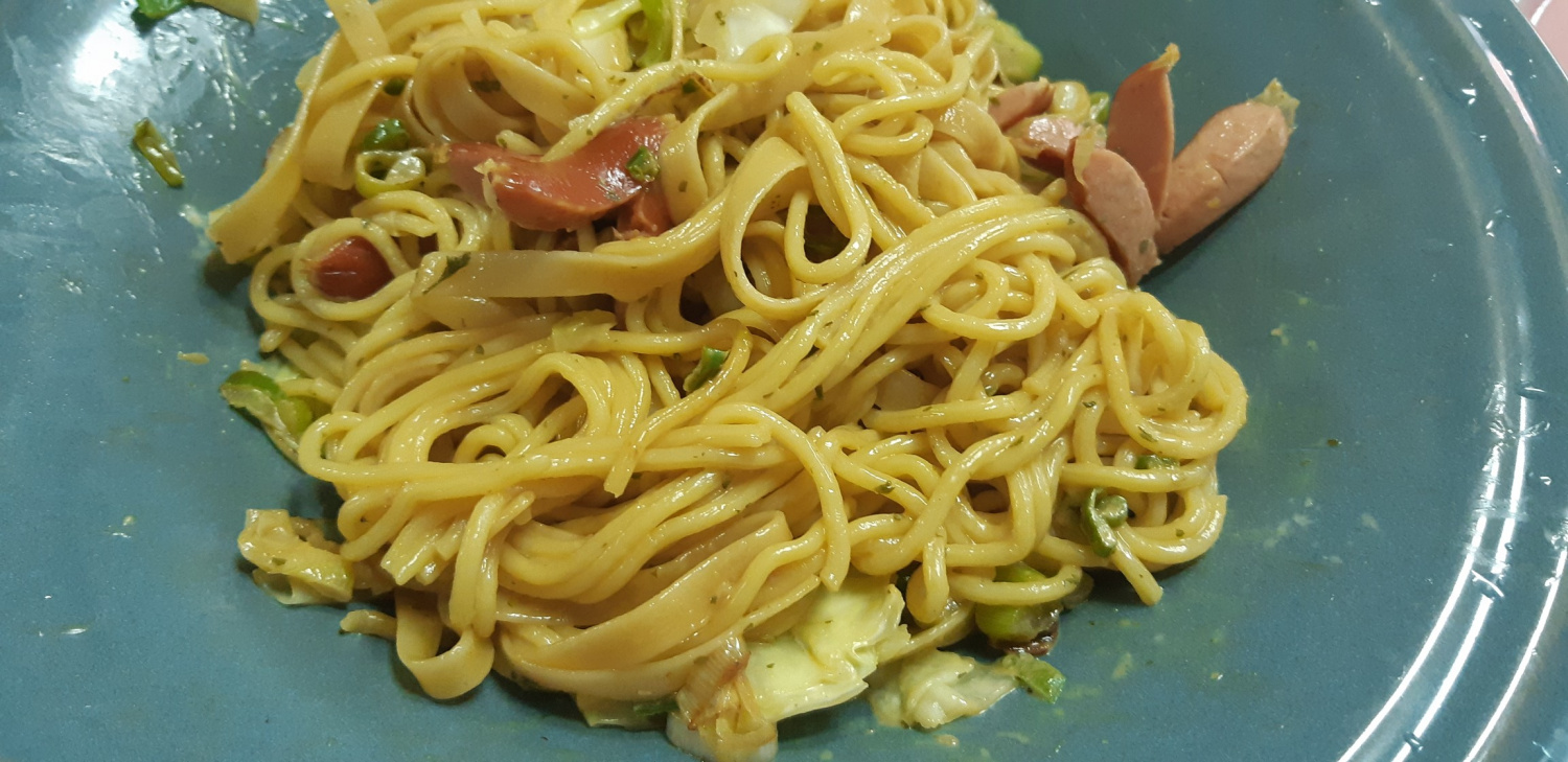 Since these noodles will be stir-fried, it’s best to cook them ‘al dente’ – tender but still firm to the bite. Cook for about 7-8 minutes, then drain well. To prevent sticking, toss the noodles with a little olive oil. (Important: Do not rinse the spaghetti noodles with cold water; this helps the sauce adhere better.)