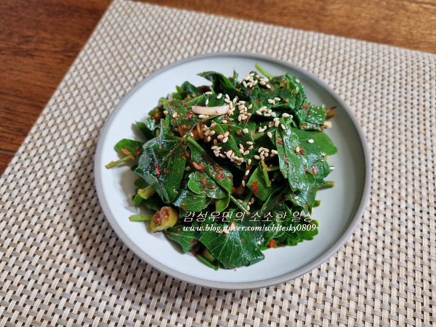 This is a recipe for Bangpungnamul (wind herb) seasoned with doenjang, a nutritious and easy-to-make side dish. It’s known for its detoxifying properties, making it a great choice to consume on days filled with yellow dust or fine dust. This seasonal namul will invigorate your appetite.