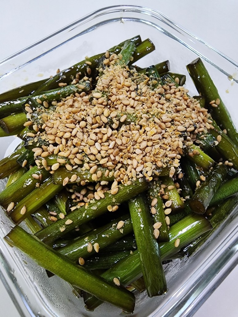 Hello everyone! Today, we’re going to make delicious stir-fried garlic scapes with soy sauce using fresh, seasonal garlic scapes. I made a special dish with the garlic scapes my mother bought from the traditional market! Garlic scapes can have a slightly pungent taste if not cooked enough, and it can take a long time to cook them thoroughly in a pan. While blanching in boiling water is common, today I’ll share a recipe that achieves a similar effect to blanching right in the pan, making it quick and easy. The crisp texture and the savory-sweet sauce are perfect as a side dish with rice!