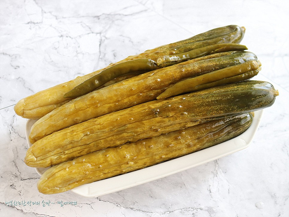 After 3 days of pickling, your delicious corn syrup oiji will be ready! You can now use these pickled cucumbers to make a refreshing sweet and sour salad (Oiji Muchim) or a cooling cold soup (Oiji Naengguk).