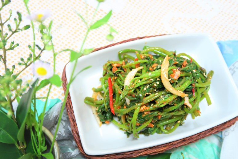 Sweet potato vines, with their unique and tender texture, are a delightful summer delicacy. When seasoned with a savory and slightly spicy doenjang (fermented soybean paste) sauce, they transform into a wonderful side dish that brings warmth to your meal. Experience their irresistible charm that will have you reaching for your chopsticks, even on days when you have a poor appetite!