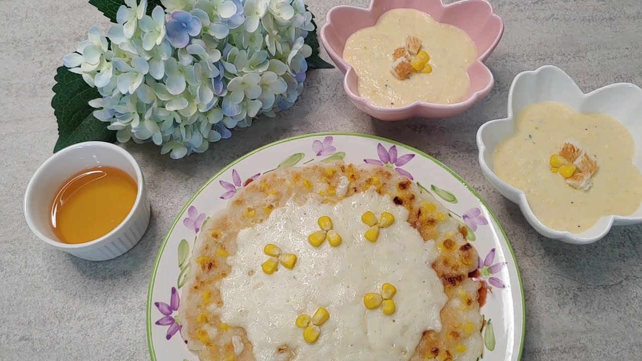 Nothing says summer quite like corn, right? I recently picked up some sweet ‘chōdāng’ corn from the supermarket and had some for a late-night snack. It was incredibly sweet, typical of the season. I had a little left over, so I separated the kernels and saved them for the next day. My daughter loves corn chowder, and my son loves pizza, so I decided to make both! The Corn Glutinous Rice Pizza is a recipe I’ve newly developed. Most pizzas use a flour dough topped with corn, but I mixed corn directly into glutinous rice flour, pan-fried it until crispy, then topped it with mozzarella cheese. Served with honey for dipping, like a Gorgonzola pizza, it was a delightful dish – almost like a rice cake, almost like a pizza! I highly recommend it! Here are two fantastic ways to savor every last sweet kernel of corn. Shall we get cooking?