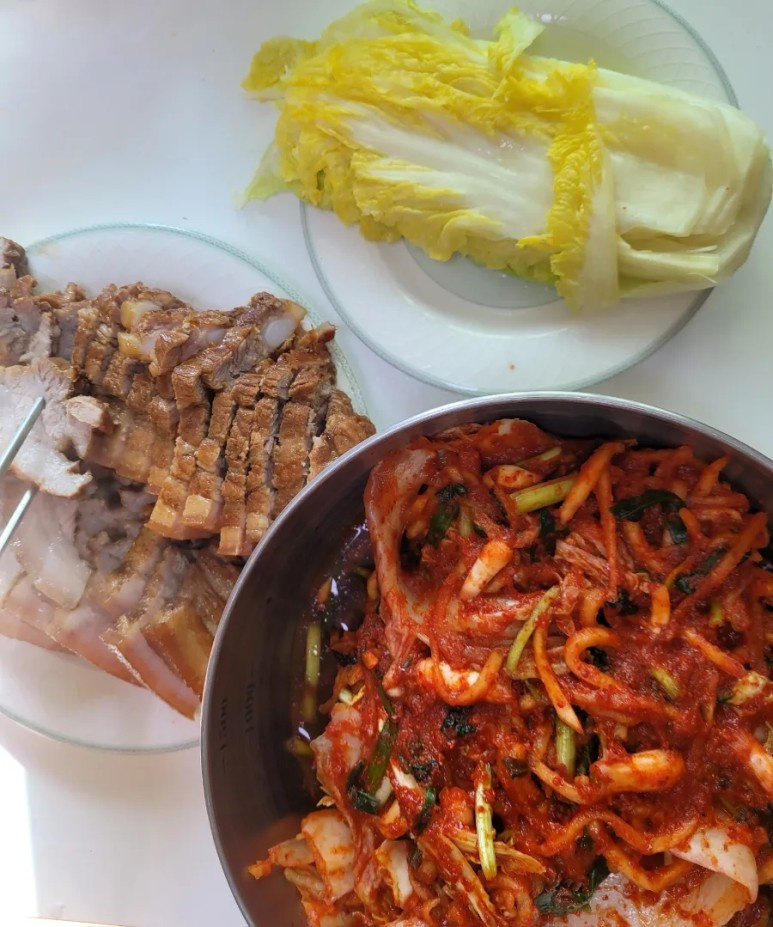 Take a large bite with a piece of fresh lettuce, a bit of kimchi, a slice of garlic, and a succulent piece of Swayuk. The explosion of flavors and textures in your mouth is simply divine. This is the taste that makes boiled pork belly so irresistibly delicious!