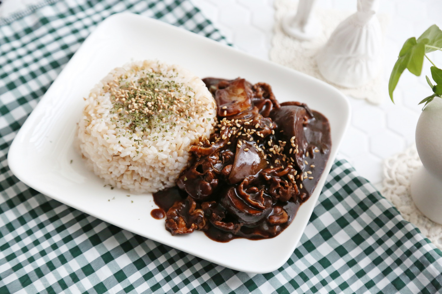 Tender Bulgogi and Eggplant Jjajang Rice Bowl
