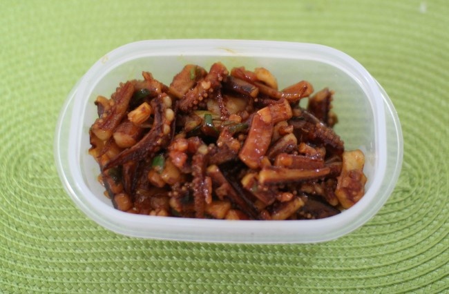 Cut the rehydrated squid tentacles into bite-sized pieces, about 3-4 cm long. Cutting them into manageable lengths is also good for children.