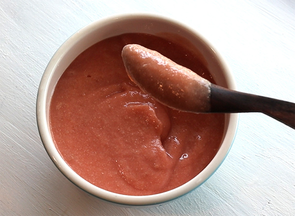 To create our low-sodium Tomato Shio Koji, add 2 tablespoons of Hanju salt or bamboo salt to the fermented mixture and stir thoroughly.