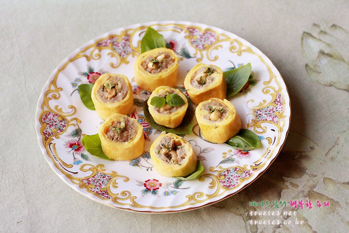 Introducing a special rolled omelet featuring tender egg crepes filled with chewy tteokgalbi (Korean grilled short rib patties) and crunchy cashews! The flavor reminiscent of finely ground tteokgalbi, combined with the nuttiness of cashews, creates a taste that everyone from children to adults will adore. It’s packed with nutrients, making it a perfect side dish for lunchboxes or a sophisticated addition to your table for special occasions. My daughter absolutely loved it, which made me very proud! Enjoy this hearty meal or a wonderful side dish.