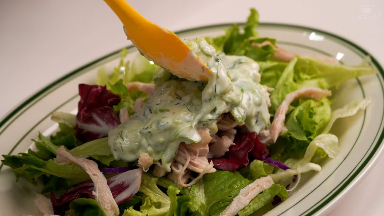 A Refreshing and Healthy Chicken Breast Salad with Authentic Greek Tzatziki Sauce