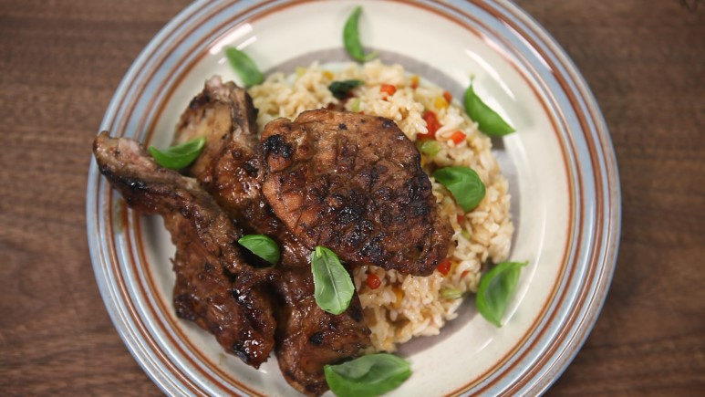 Arroz Frito con Albahaca y Costillas de Cerdo Marinadas