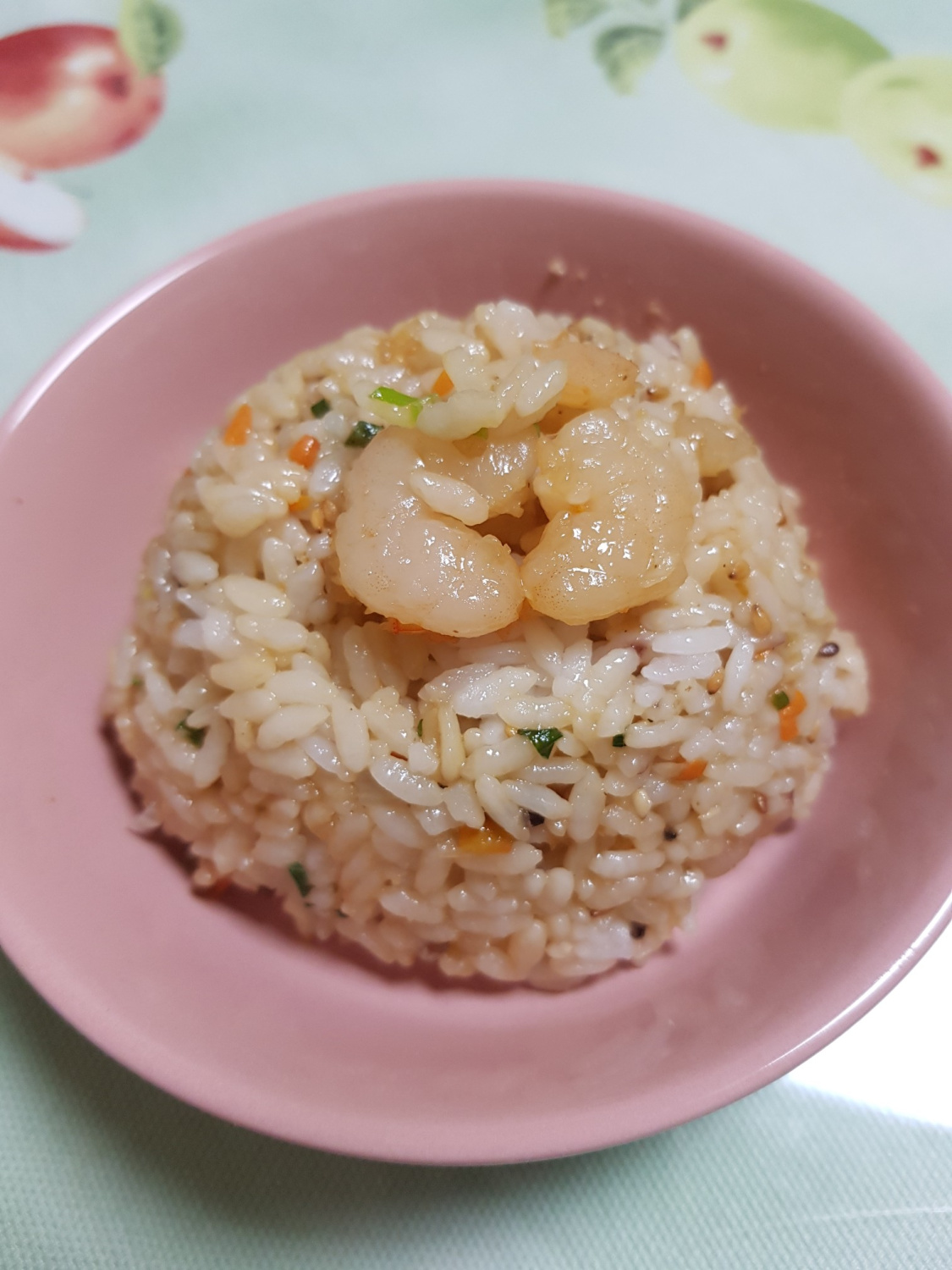 Le preparé este arroz frito con muchos camarones a mi hija que trabaja a tiempo completo. Es un arroz frito delicioso donde los trozos de camarones, suaves y sabrosos, explotan en tu boca, brindando una explosión de sabor. Es una comida satisfactoria y sabrosa.