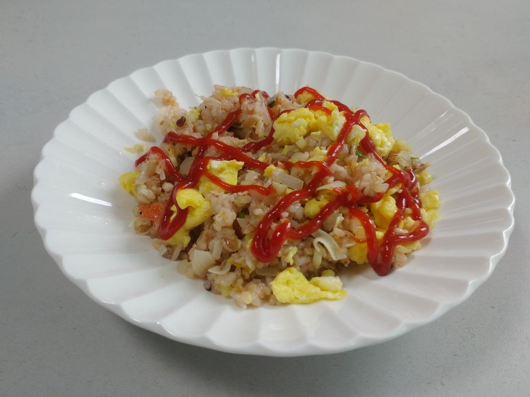 Sirva el arroz frito de palitos de cangrejo y patata caliente en cuencos. Combina maravillosamente con kimchi para un contraste refrescante, o puede rociar un poco de kétchup por encima para un perfil de sabor diferente. ¡Disfrute de esta comida sustanciosa y deliciosa hecha con ingredientes sencillos!