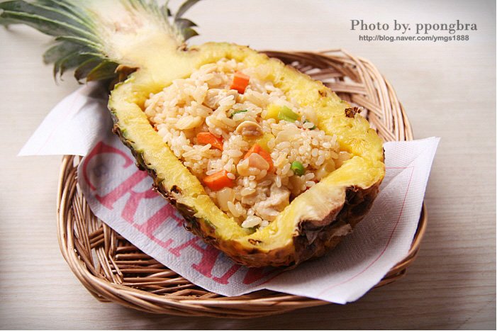 Un arroz frito refrescante, dulce y ácido, perfecto para cuando no tienes mucho apetito o buscas algo ligero y sabroso. La vibrante piña añade un toque tropical que complementa maravillosamente los ingredientes salados. ¡Una delicia para la vista y el paladar!
