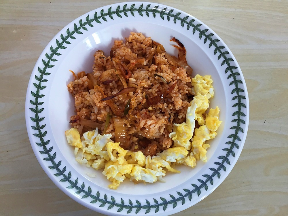 Arroz Frito de Kimchi con un Sabor Dulce y Ácido que Evoca Recuerdos de la Cafetería