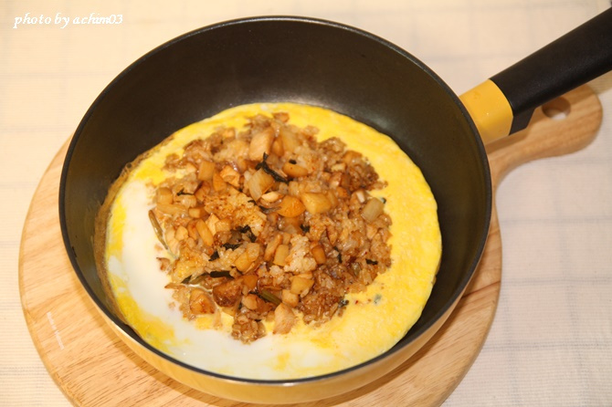 Disfrute de una mañana de fin de semana relajada con un arroz frito de pechuga de pollo ahumado sustancioso y reconfortante. La textura crujiente del kimchi de rábano (Kkakdugi) y el sabroso sabor del pollo ahumado se combinan para crear un arroz frito delicioso que estimula el apetito.