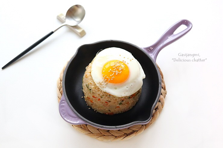 ¡Tu delicioso arroz frito marinero está listo! Ningún arroz frito está verdaderamente completo sin un huevo frito con la yema líquida. Fríe un huevo a tu gusto (se recomienda la yema líquida) en una sartén aparte y colócalo artísticamente encima del arroz frito. Esto no solo lo hace lucir atractivo, sino que también añade otra capa de delicioso sabor. ¡Disfruta tu comida!