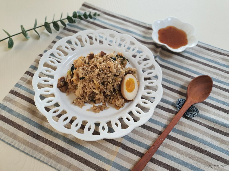 Últimamente he estado disfrutando de los consejos de cocina de Baek Jong-won. Recientemente compartió formas de hacer que las cajas bento de CU y el kimbap sean aún más deliciosos, y me intrigó especialmente el arroz frito. Hizo dos tipos: uno de la bento de Dakgalbi y otro de la bento de Cerdo sobre Arroz. Sentí que ya sabía a qué sabría el arroz frito de Dakgalbi, así que me intrigó mucho la versión de Cerdo sobre Arroz y decidí probarla. ¡Es sorprendentemente fácil y sabroso!