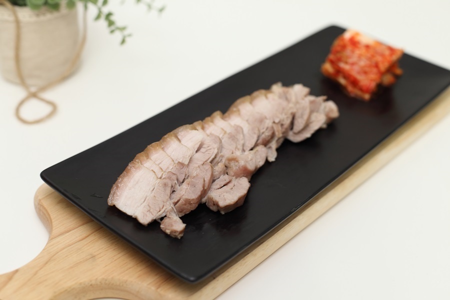 Sorprenda a todos con este auténtico ‘Bossam’ coreano preparado en casa. Utilizando una olla de hierro fundido (tipo Dutch oven), este método de cocción a baja humedad reduce el tiempo en aproximadamente 10 minutos comparado con la cocción tradicional en agua. El resultado es una carne de cerdo increíblemente tierna y sabrosa, con un sabor más intenso y jugoso, ya que los nutrientes y el sabor se conservan dentro de la carne. ¡Diga adiós a la carne de cerdo insípida y hola a este delicioso y jugoso ‘Bossam’!