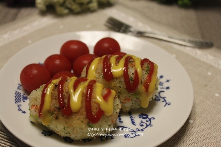 Bolas de Arroz con Salchicha Fritas, Crujientes y Doradas