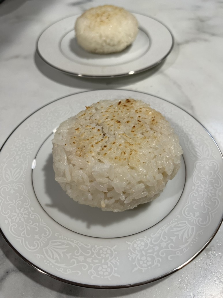 Aplane ligeramente las bolas de arroz formadas. Cepille ambos lados ligeramente con aceite vegetal. Coloque las bolas de arroz en una sartén precalentada a fuego medio-bajo y fría hasta que estén doradas y ligeramente crujientes por ambos lados. Ajuste el fuego para evitar que se quemen. Estarán listas cuando tengan un hermoso color dorado.