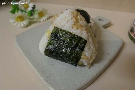 Finalmente, cierra la tapa del molde y presiona firmemente. Esto creará una bolita de arroz triangular perfectamente formada. Para un toque extra, puedes envolver una tira de alga nori sazonada alrededor de los lados de la bolita de arroz, lo que añade atractivo visual y realza el sabor.