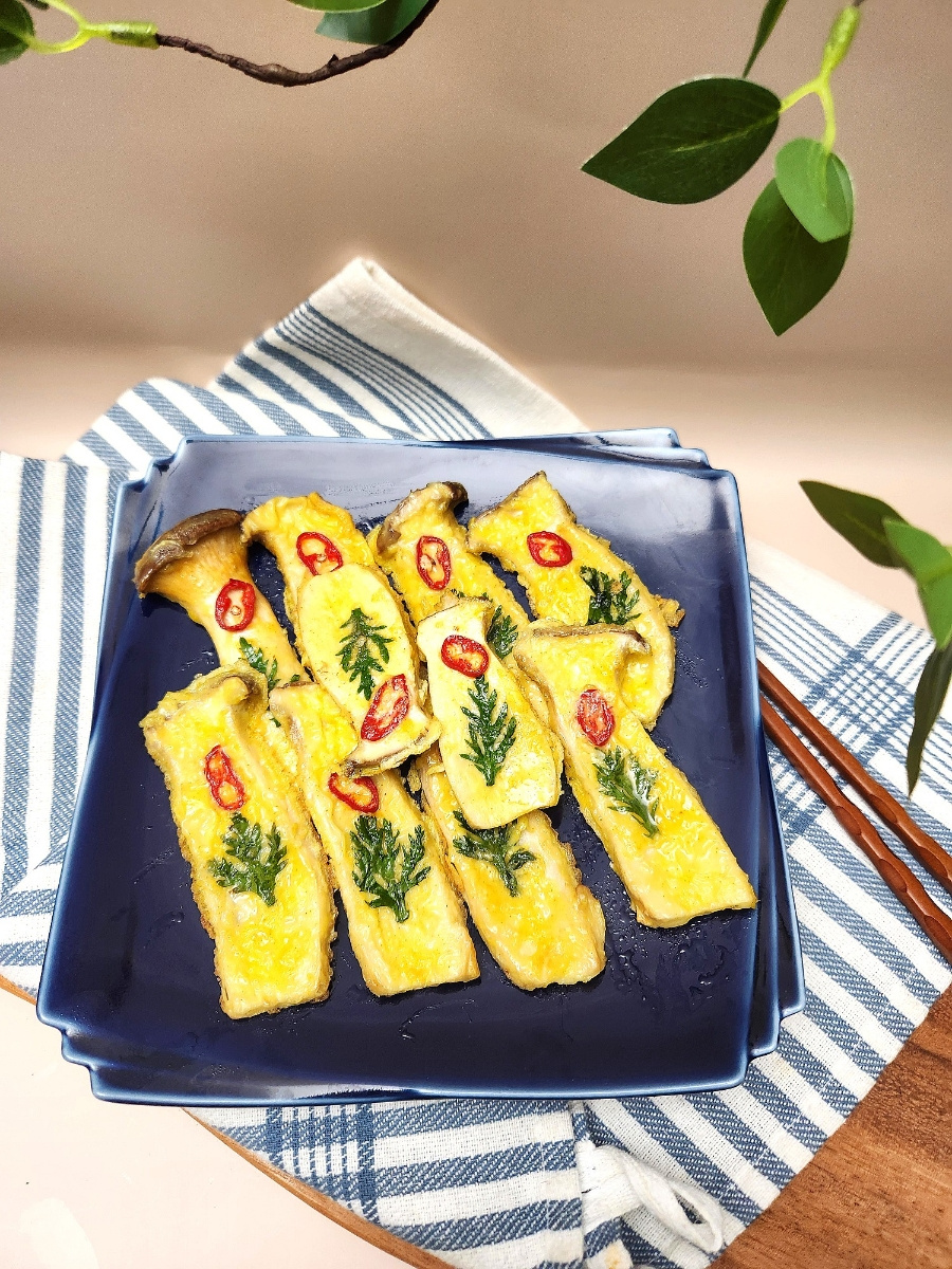 ¡Los buñuelos son un elemento indispensable en las festividades! Esta vez, hemos creado buñuelos especiales y deliciosos utilizando setas ostra rey, muy rentables. Una pizca de curry en polvo añadida para un tono amarillo más brillante no solo los hace visualmente atractivos, sino que también realza la textura masticable de las setas con un sutil aroma a curry, dando como resultado un plato único y delicioso. ¿Por qué no añadir un toque simple pero elegante a su mesa festiva con estos Buñuelos de Seta Ostra Rey y Verduras?
