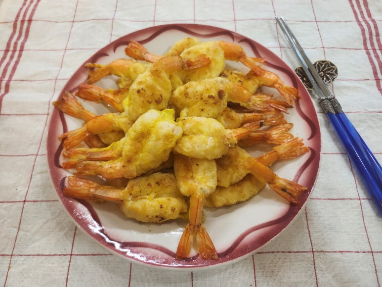 Calienta una cantidad generosa de aceite de cocina en una sartén a fuego medio. Sumerge los camarones cubiertos con la mezcla para freír en la mezcla de huevo, asegurándote de que queden cubiertos excepto por la punta de la cola. Coloca con cuidado los camarones en la sartén caliente, dejando espacio entre ellos para que no se peguen. Mantén el fuego medio para evitar que se quemen.