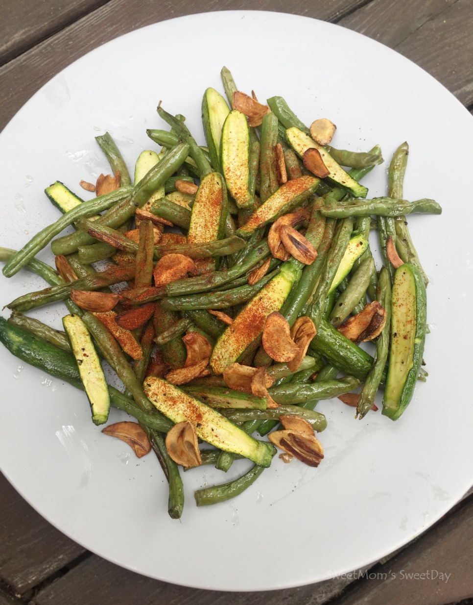 ¡Y aquí lo tienes! Un delicioso acompañamiento que presenta la dulzura natural del calabacín, la textura crujiente y a nuez de las judías verdes, y el delicioso crujido del ajo asado, todo armonizando perfectamente. Este plato sencillo pero delicioso y nutritivo está listo en un instante. ¡Disfruta de tu comida!