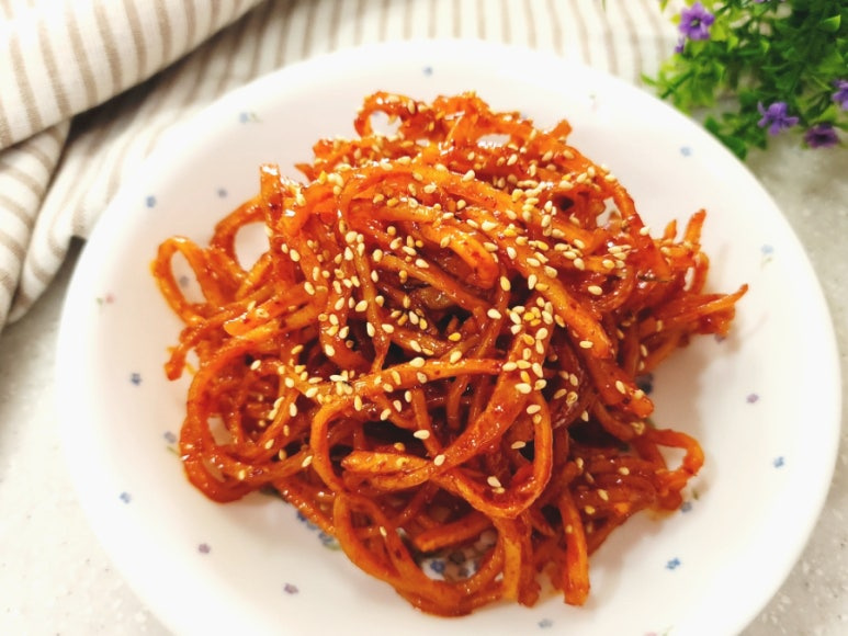 ¡Te presentamos una receta de Jinmichae Bokkeum que se mantiene deliciosa incluso después de varios días! Hemos incluido un paso especial de pre-tratamiento para asegurar una textura maravillosamente suave. Este plato es perfecto como acompañamiento lleno de sabor que te hará pedir más arroz.