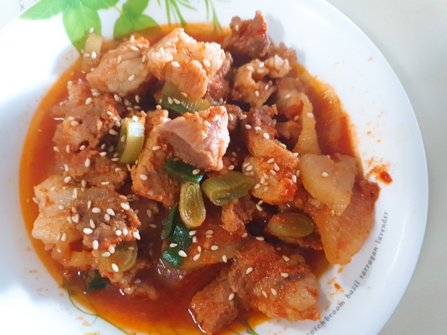 Ingredientes Principales- 300g de cerdo (carne para estofado o corte para bulgogi)