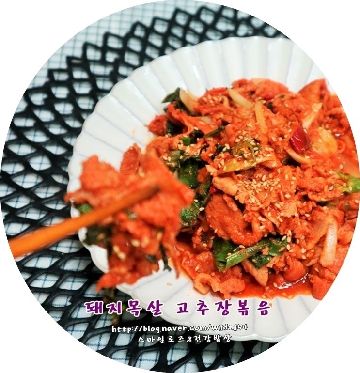 Usé cuello de cerdo cortado en rodajas finas con menos grasa, así que lo sazoné y salteé de manera similar al bulgogi. El sabor picante y ácido era tan apetitoso que lo disfruté mucho. Es un plato que hace desaparecer rápidamente un bol de arroz.