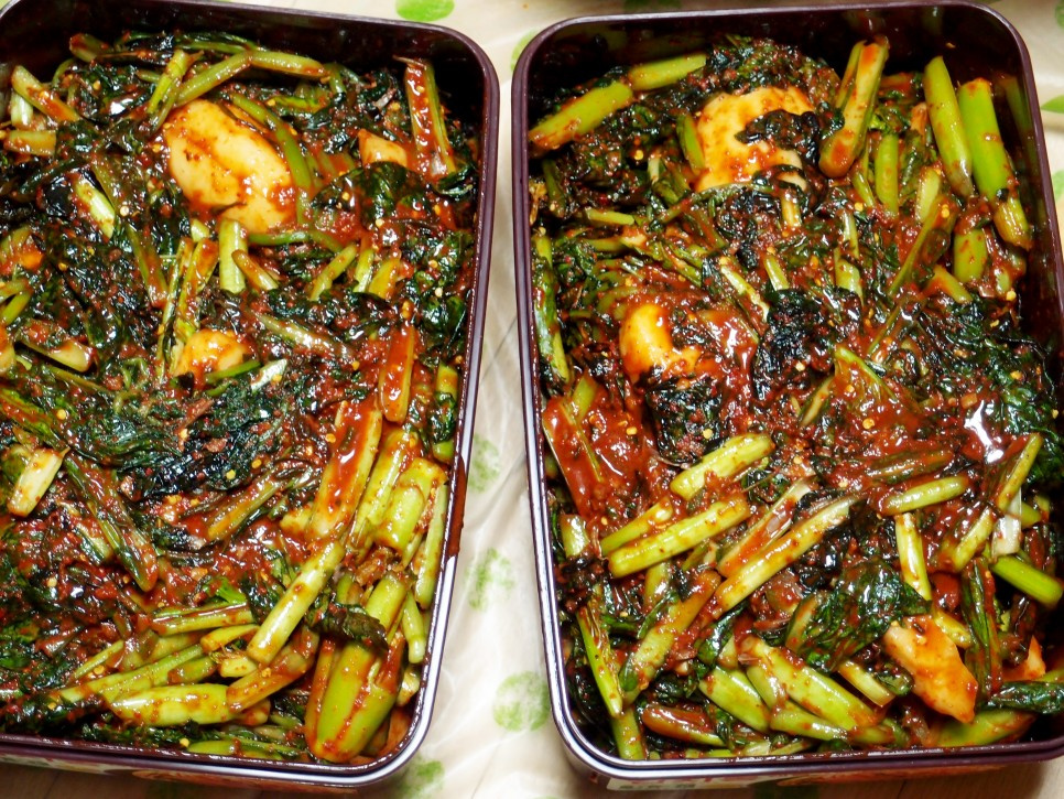 ¡Tu Chogak Kimchi, generosamente relleno con aromáticas hojas de mostaza, está ahora completo! Una vez que tengas una deliciosa pasta de kimchi, hacer Chogak Kimchi e incluso kimchi de cebolleta se convierte en un proceso rápido y fácil. El kimchi de repollo napa, sin embargo, implica algunos pasos más.