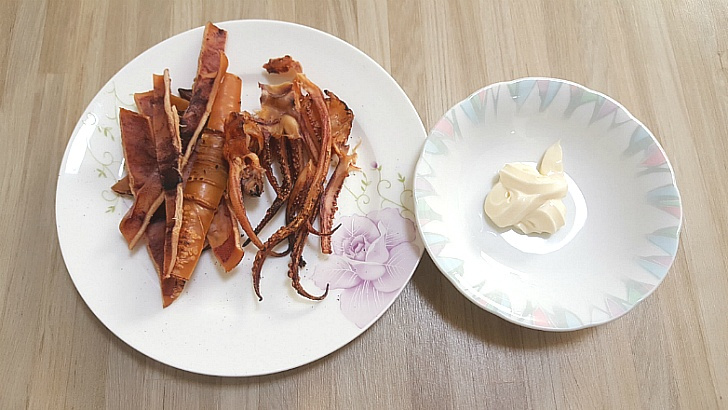 Este calamar semiseco perfectamente húmedo y masticable combina maravillosamente con la cremosa mayonesa, que complementa su sabroso sabor. Para darle un toque extra, puede mezclar un poco de chile picado o salsa de soja. ¡Ahora, lo único que queda es disfrutar!