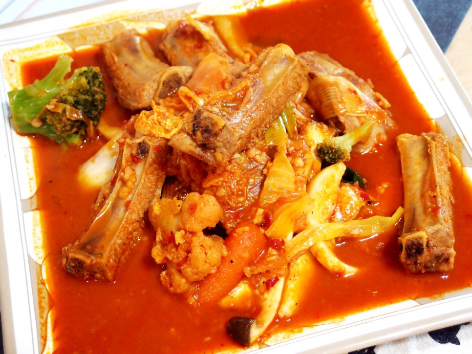 ¡Tu estofado de costillas de cerdo picante y profundamente sabroso está listo! Los intestinos de caballa salada le dan al caldo un sabor rico y umami que complementa maravillosamente las costillas. Mezclar el sabroso caldo y las tiernas verduras con arroz es muy recomendable. ¡Es tan delicioso como las propias costillas!