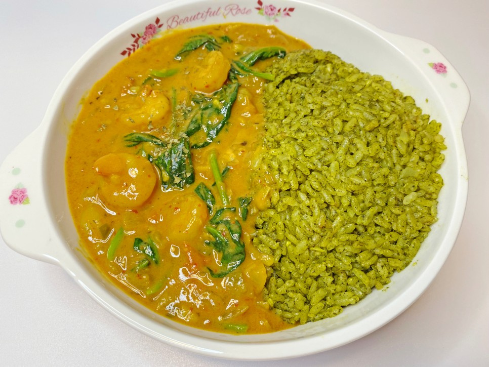 Te presentamos una deliciosa y exótica receta de curry al estilo indio, enriquecida con leche de coco, espinacas frescas y tiernos camarones. Este curry es una explosión de sabores aromáticos de la India, con un toque picante gracias a los chiles coreanos (cheongyang) y el chile en polvo, maravillosamente equilibrado por la dulzura y cremosidad de la leche de coco. Es un plato fragante y reconfortante, perfecto para una comida especial. Sigue estos sencillos pasos y disfruta de un auténtico sabor indio en tu propia cocina.