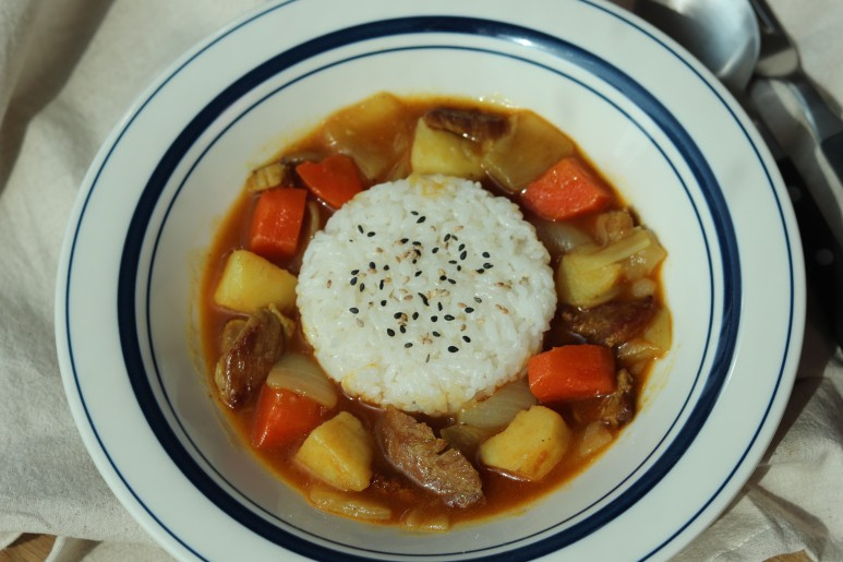 Cuando las verduras estén tiernas, ¡es hora de añadir el ingrediente secreto! Incorpora las 2 cucharadas de salsa tonkatsu. La dulzura sutil y el umami de la salsa tonkatsu realzarán el sabor del curry de una manera deliciosa. Mezcla bien y deja que hierva a fuego lento un par de minutos más hasta que la salsa espese ligeramente. ¡Tu delicioso Curry Salteado de Papada de Cerdo está listo para servir!