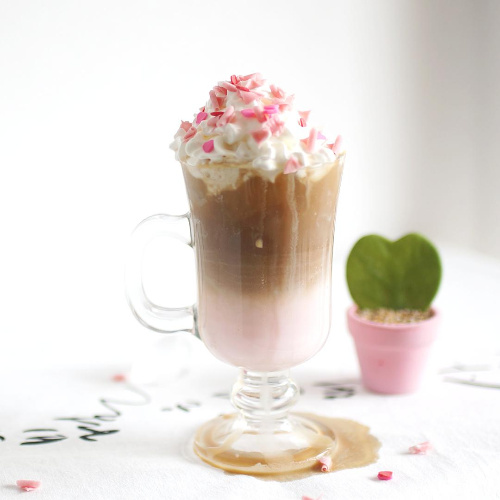 Para celebrar San Valentín, preparé un hermoso moca de chocolate rosa. ¡Que tengas un día dulce!