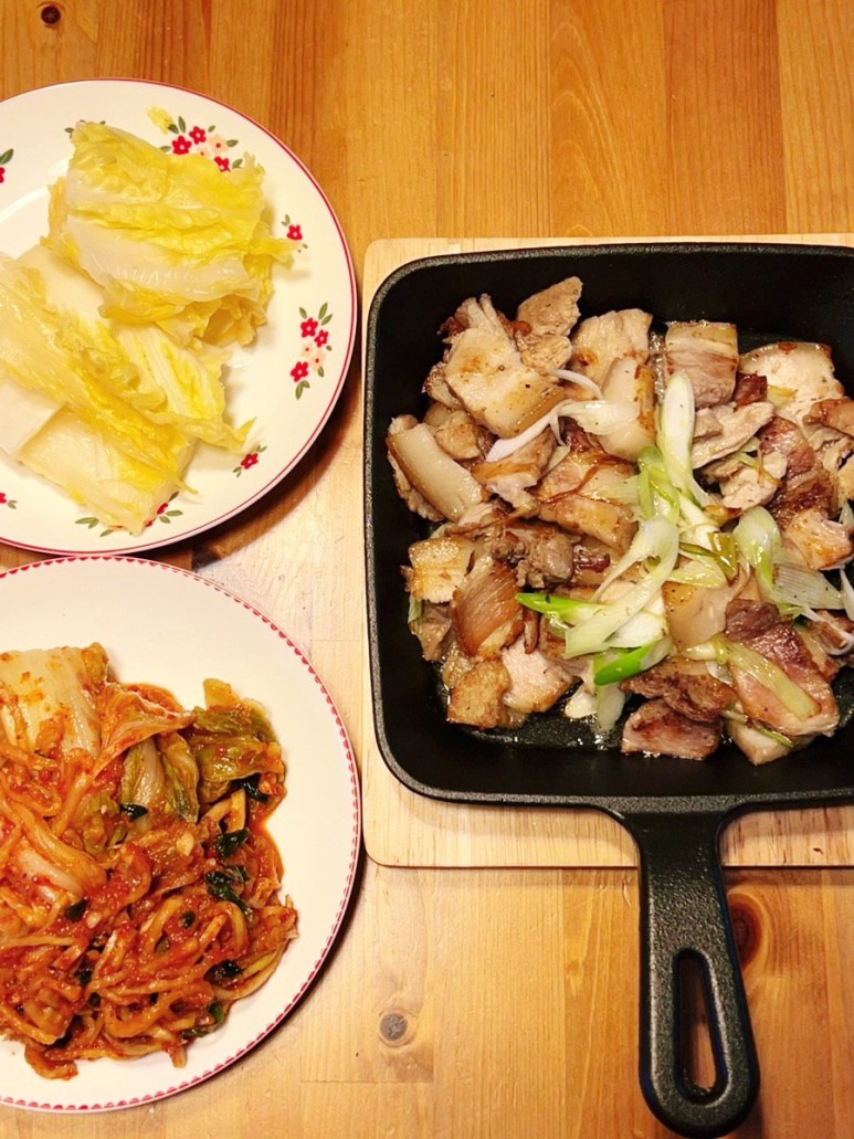 Antes de que te des cuenta, un aroma delicioso inunda el aire y un plato maravilloso está listo. Como el cerdo ya estaba sazonado al hervirlo, está delicioso tal cual. Sin embargo, si lo deseas, puedes servirlo con un poco del relleno de col napa para kimchi sobrante y pasta de condimento para una experiencia de sabor aún más rica. Disfrutar hasta el último bocado de las sobras de suyuk me hace esperar con ansias el próximo día de hacer kimchi.