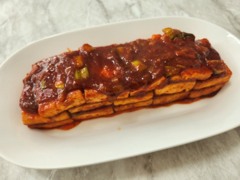 El tofu estofado es un acompañamiento sustancioso que gusta a todos, jóvenes y mayores. El suave tofu absorbe el sabroso aderezo a base de salsa de soja, ¡haciendo que quieras terminar un cuenco entero de arroz! También puedes añadir un poco de chile en polvo o gochujang para hacerlo picante, según tu preferencia. Este es un plato sencillo pero maravilloso para servir con tu comida.