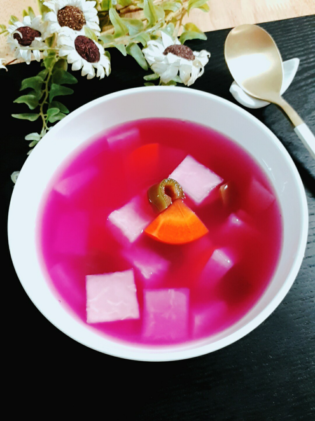 Dongchimi Refrescante de Remolacha y Rábano con un Encantador Color Rosa