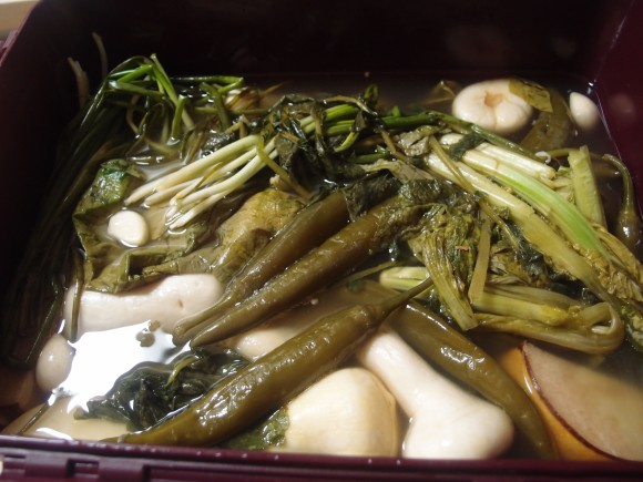 Añada las cebolletas lavadas y los tallos de crisantemo de corona a la mezcla de salazón junto con los rábanos. Esto asegura que todas las verduras se salen de manera uniforme y que sus sabores únicos se mezclan maravillosamente sin ser abrumadores.