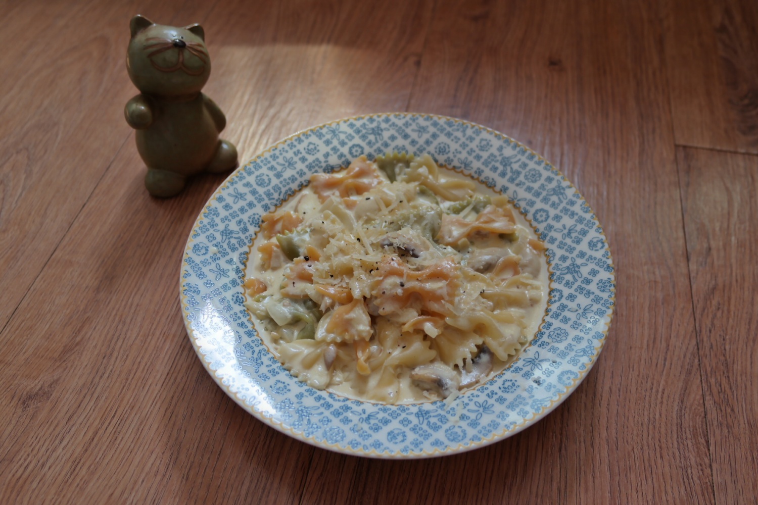 ¿Antojas algo indulgente y delicioso a veces? ¿O quizás buscas crear una atmósfera encantadora para la cena? Esta pasta cremosa, que combina una suave salsa de crema y champiñones aromáticos, es sorprendentemente fácil de preparar en casa. Usar pasta farfalle con forma de pajarita la hace visualmente impresionante, convirtiéndola en un plato ideal para ocasiones especiales o para agasajar invitados.