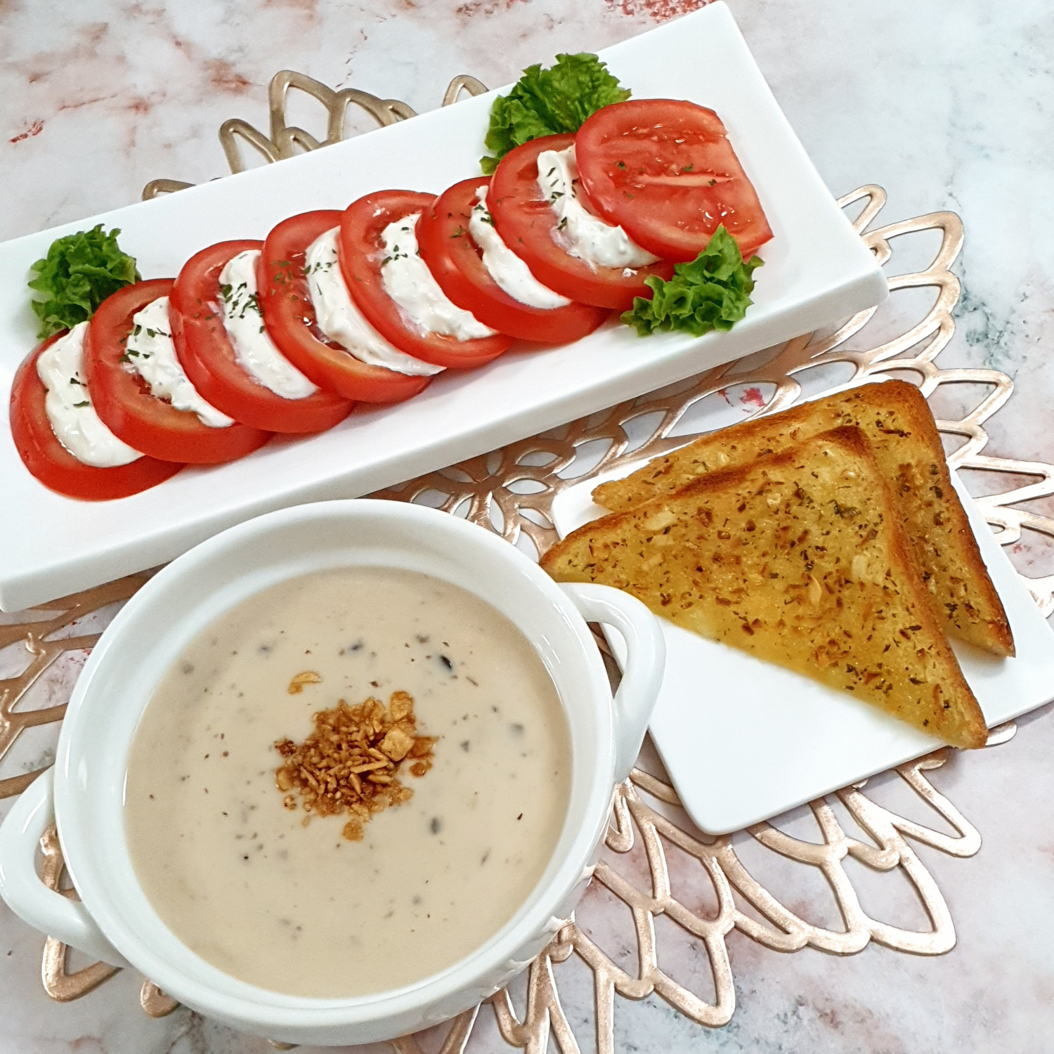 Ensalada Caprese de Tomate Cremosa con Pan de Ajo